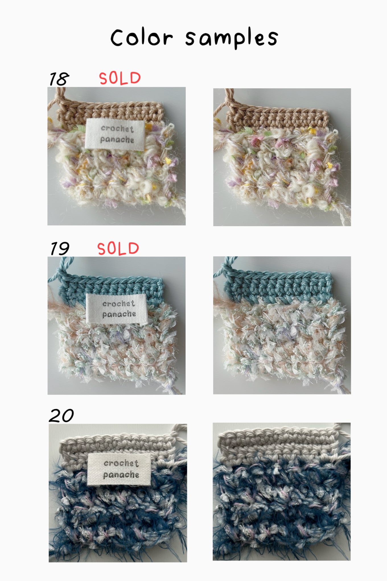 「SOLD」が付いているカラーは現在在庫がございません。