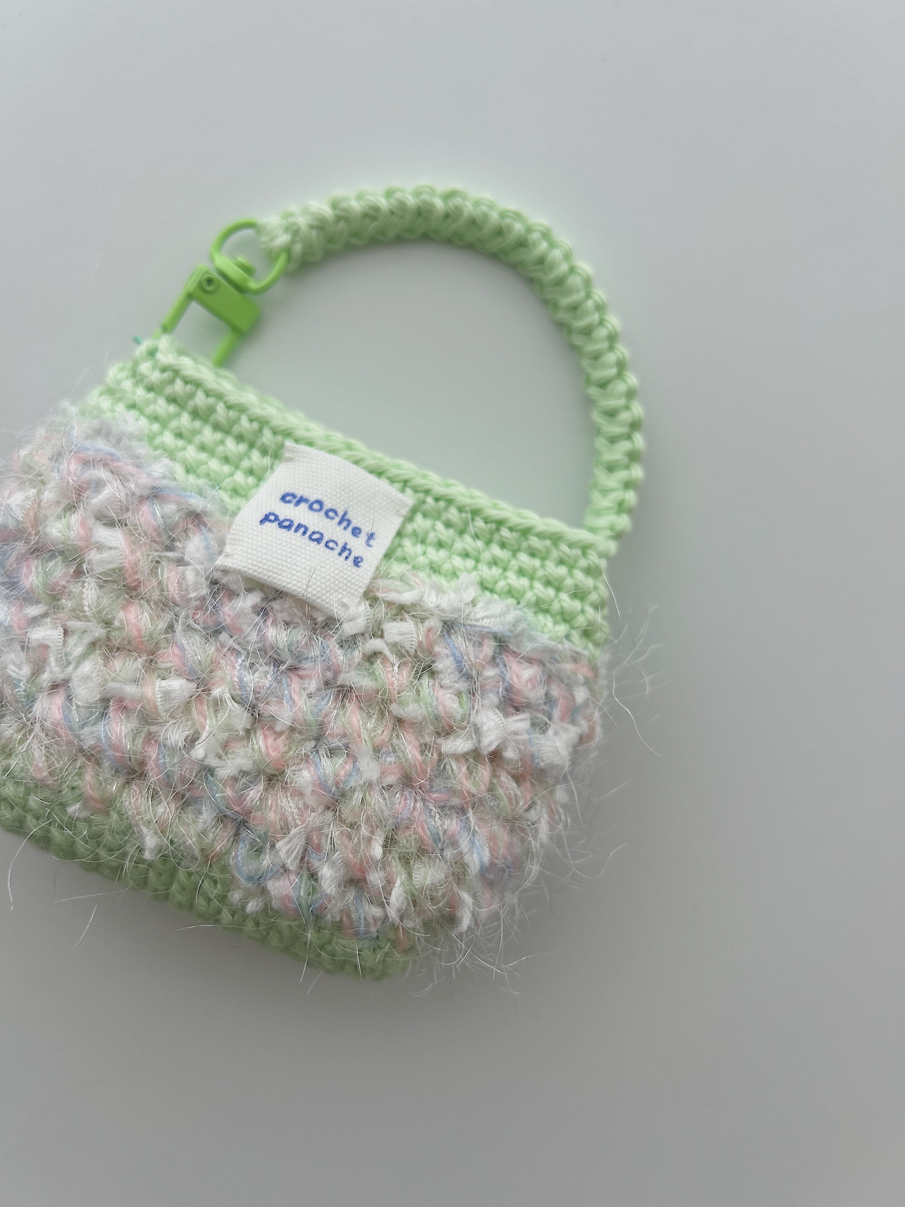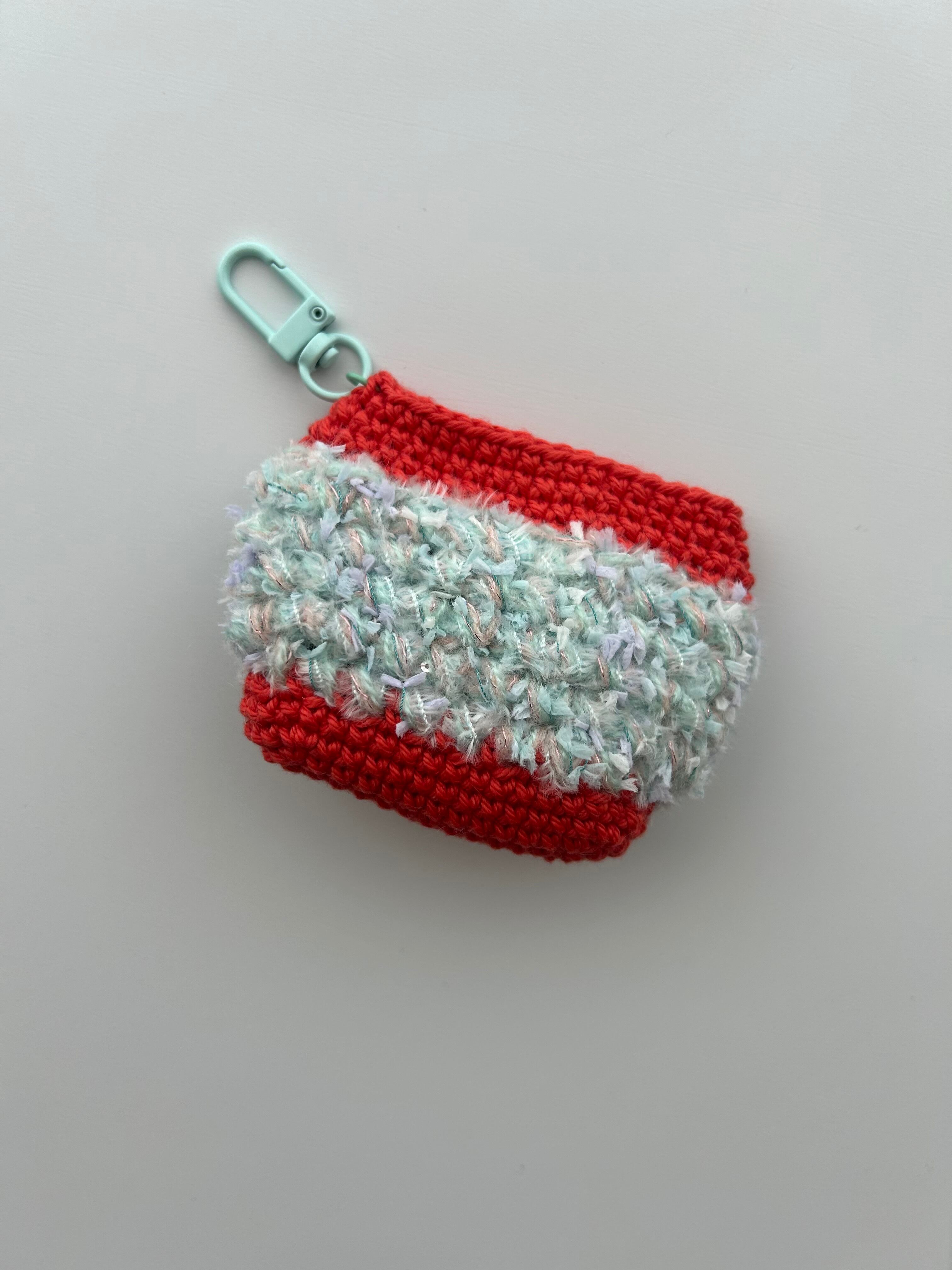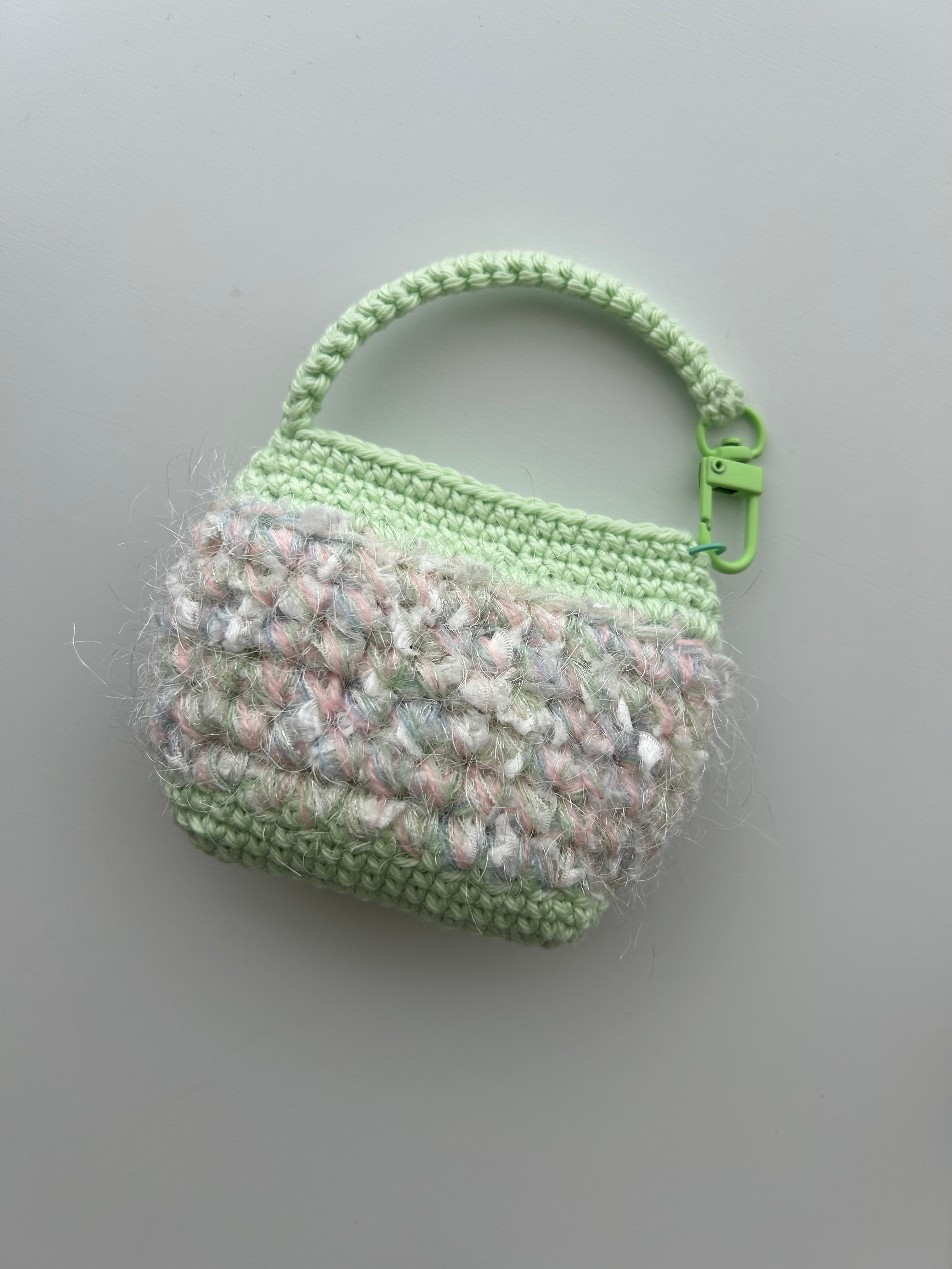 かぎ針編みで編んだバッグチャームとAirPodsケースです✩